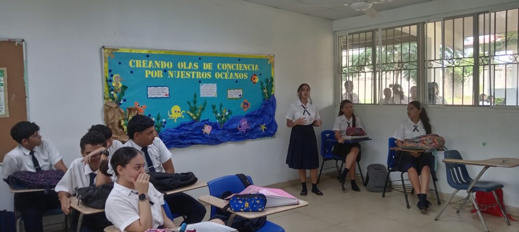 El pasado 30 de septiembre se llevó a cabo un concurso de murales en diferentes centros educativos de Aguadulce, donde estudiantes plasmaron mensajes artísticos en favor de la vida marina, la pesca responsable y la protección de los océanos. Durante esta jornada, representantes de Wetlands International Panamá acompañaron las visitas a diversas escuelas.