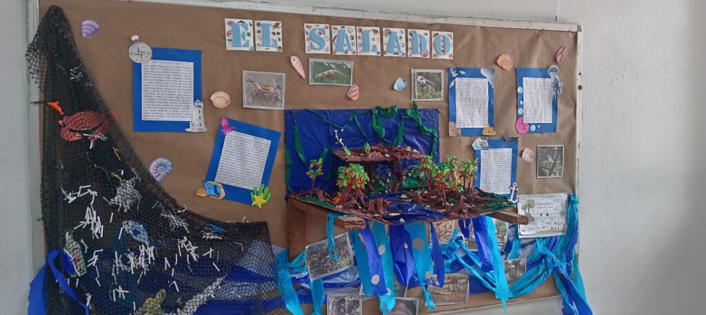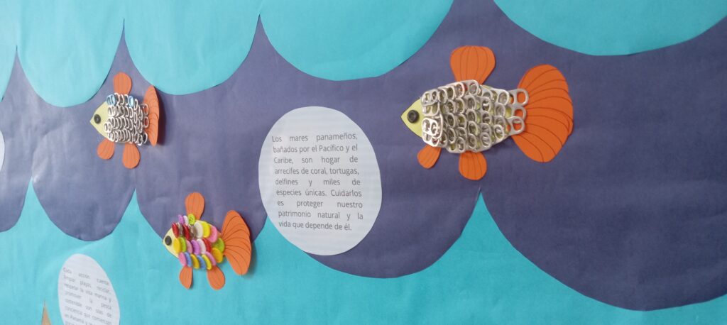 El pasado 30 de septiembre se llevó a cabo un concurso de murales en diferentes centros educativos de Aguadulce, donde estudiantes plasmaron mensajes artísticos en favor de la vida marina, la pesca responsable y la protección de los océanos. Durante esta jornada, representantes de Wetlands International Panamá acompañaron las visitas a diversas escuelas.