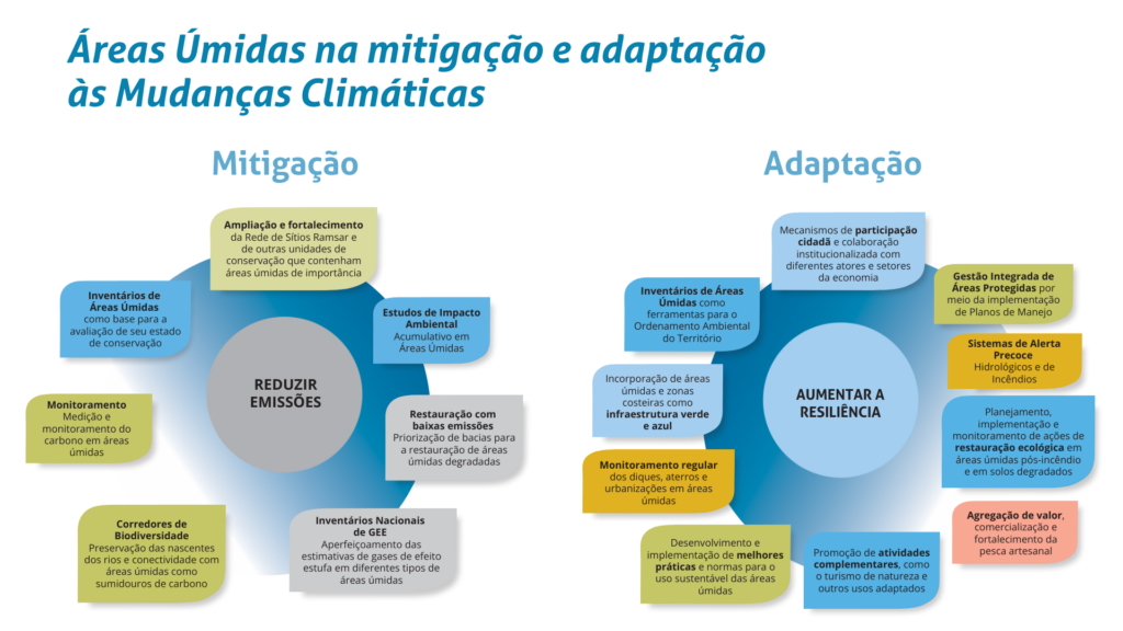 Ações possíveis para mitigar e nos adaptar aos efeitos das mudanças climáticas a partir das áreas úmidas.