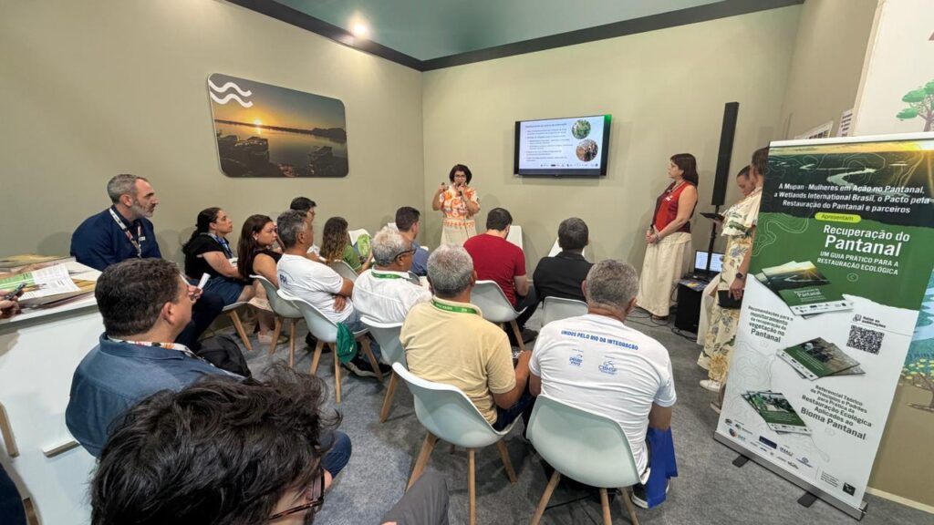 Durante a COP30, realizada em Belém (PA), a Wetlands International Brasil e a Mupan – Mulheres em Ação no Pantanal lançaram oficialmente um conjunto de materiais voltados ao fortalecimento da restauração ecológica no Pantanal e em outras áreas úmidas brasileiras.