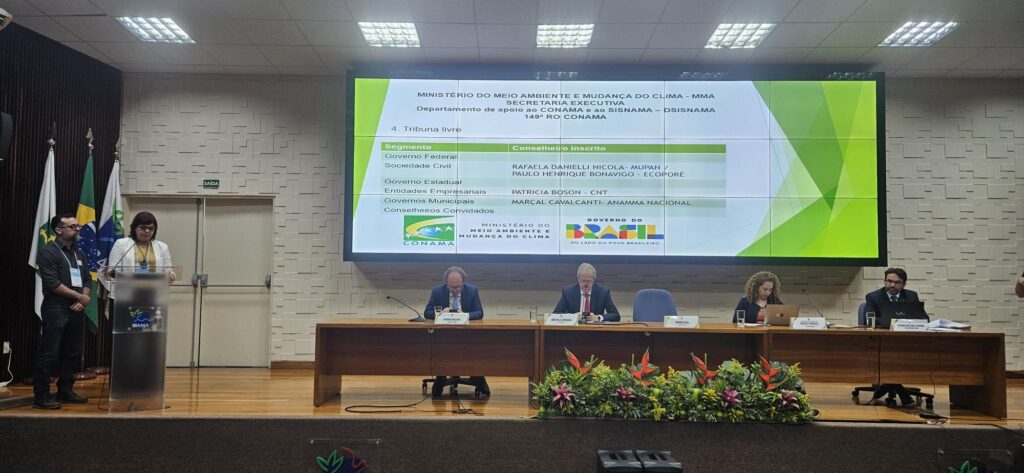 Durante a Tribuna Livre, a bancada da sociedade civil apresentou uma manifestação coletiva sobre temas relevantes da agenda ambiental. O posicionamento foi lido por Rafaela Nicola e por Paulo Henrique Bonavigo, da organização Ecoporé, representantes escolhidos pelo grupo para apresentar o texto previamente construído de forma conjunta pelas entidades que compõem o segmento.