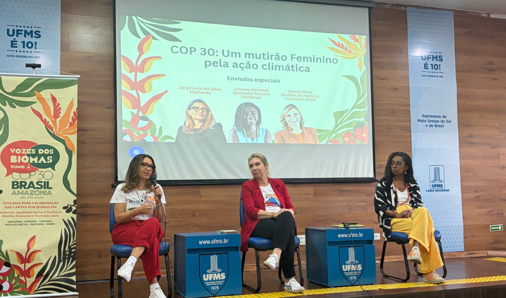 O encontro contou com a presença da primeira-dama Janja Lula da Silva, das ministras Sônia Guajajara (Povos Indígenas) e Simone Tebet (Planejamento) e das Enviadas Especiais da COP30 – Denise Dora (Direitos Humanos e Transição Justa) e Jurema Werneck (Igualdade Racial e Periferias), além de lideranças femininas, especialistas e representantes da sociedade civil pantaneira.