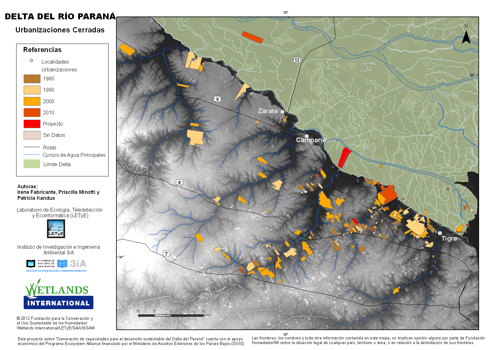 Mapa de las urbanizaciones cerradas en el Delta del Paraná
